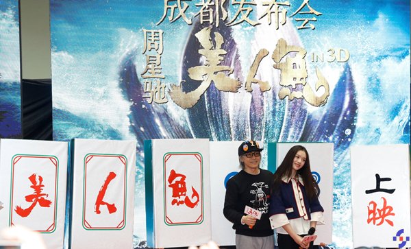 凤凰娱乐讯 集结了邓超、罗志祥、张雨绮、林允等高人气主演,由周星驰导演的电影《美人鱼》将于2月8日大年初一贺岁公映。自“星爷陪你过大年”全国活动开启以来,导演周星驰先后带领影片主创走遍广州、武汉、沈阳、上海等各大城市为电影宣传造势。今日星爷携“美人鱼”林允、“馆长”杨能来到成都。作为过年前的收官之站,自然格外热闹,演员林允、杨能集体爆料拍摄趣闻,星爷更是畅谈对童话和环保主题的想法。最后大家集体贴美人鱼窗花,为节日增添更多喜庆。