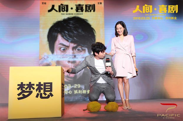 影片也于3月24日举办了“生活不易,人间有戏”主题发布会,首演夫妻的艾伦王智默契十足,现场玩起“捆绑play”,艾伦当场被逼“跪榴莲”,鲁诺和大潘则生吞柠檬“心里酸”。