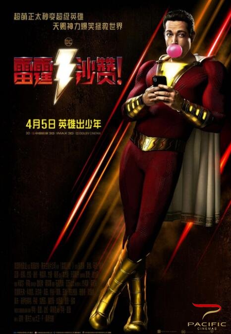 《雷霆沙赞!》将于4月5日与北美同步上映,目前预售已全面开启。