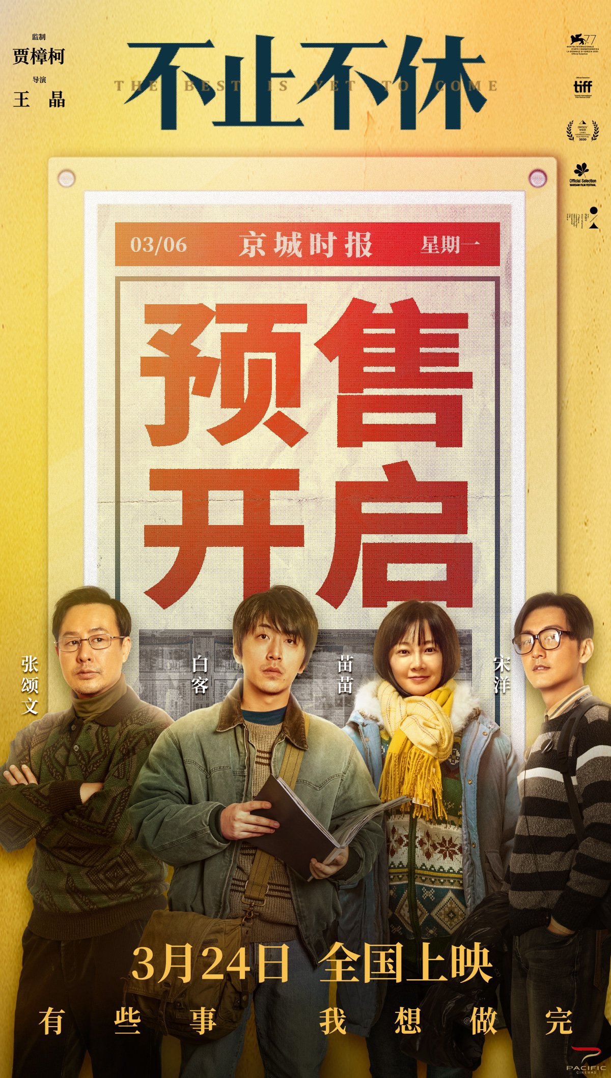 现实主义题材电影《不止不休》今日正式开启预售。电影由青年导演王晶执导,贾樟柯监制,白客、苗苗、张颂文领衔主演,宋洋特别出演,王奕权、周野芒主演,秦海璐、胡天渝友情出演,将于3月24日全国公映。