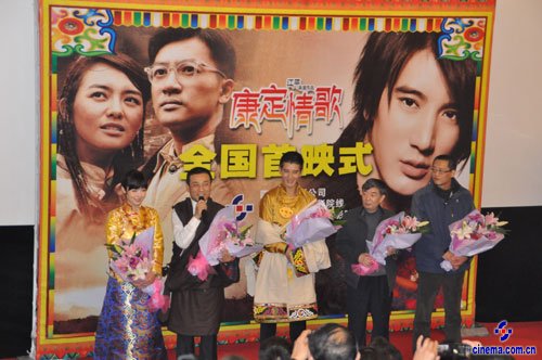 10月13日下午,电影《康定情歌》主创人员一行,甘孜州州委、州人大、州政府、州政协、甘孜军分区领导以及州级各部门负责人出席了在康定太平洋情歌电影院举行的该片全国超前首映式。影片首映活动由甘孜州政府副州长栾国志主持,州委宣传部杨秀彬部长代表州委致辞,中国电影集团公司副总经理史东明代表制片方致辞,中国电影集团公司副总经理、《康定情歌》总导演江平向在座领导、观众介绍了拍摄影片的特殊意义和内涵。最后,此次首映活动在享有 “雪域王子”之称的该片藏族主演蒲巴甲、著名青年演员袁霆与现场观众fans热烈而欢快的交流中结束了,接下来现场观众超前全国一个月观看了该片。