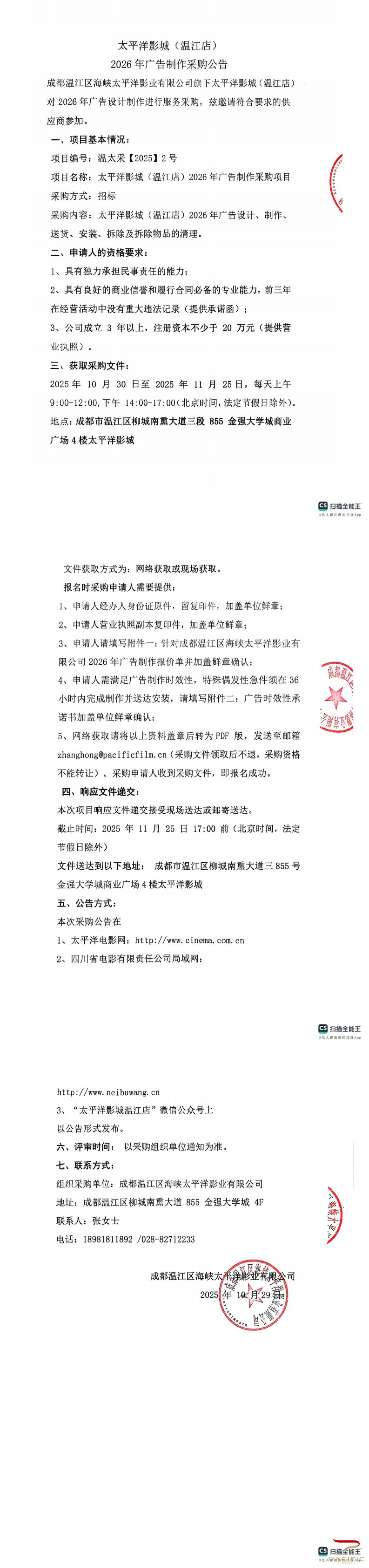 四川省电影有限责任公司—委托劳务派遣公司(派遣电工)采购项目招标公告(第二次)