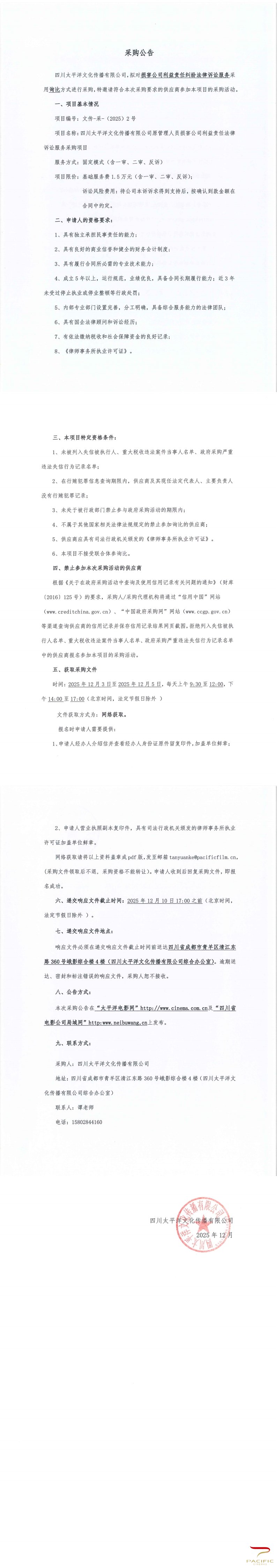 上海太平洋影业有限公司2025.12月-