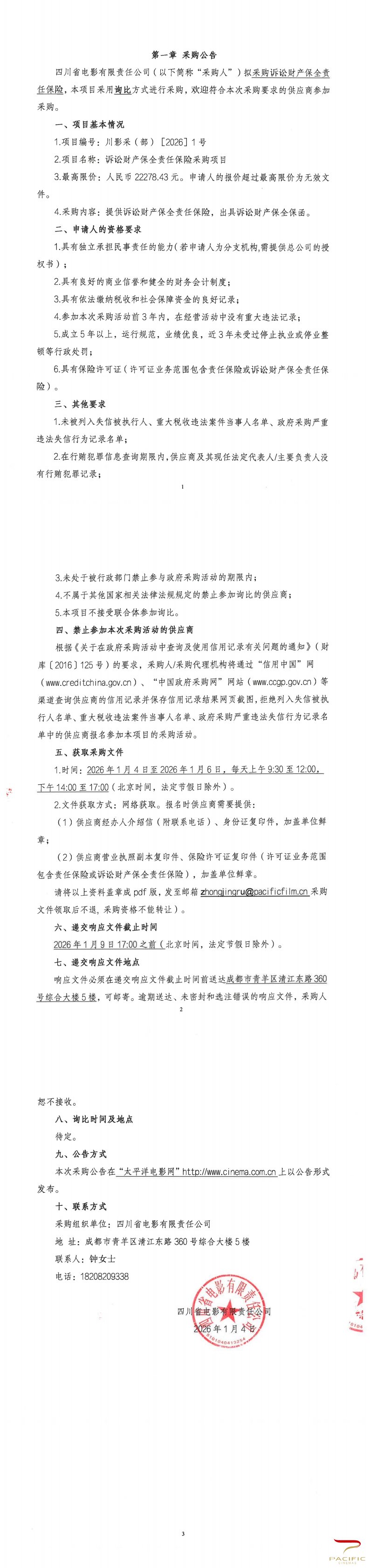 四川省电影有限责任公司诉讼财产保全责任险采购项目采购公告