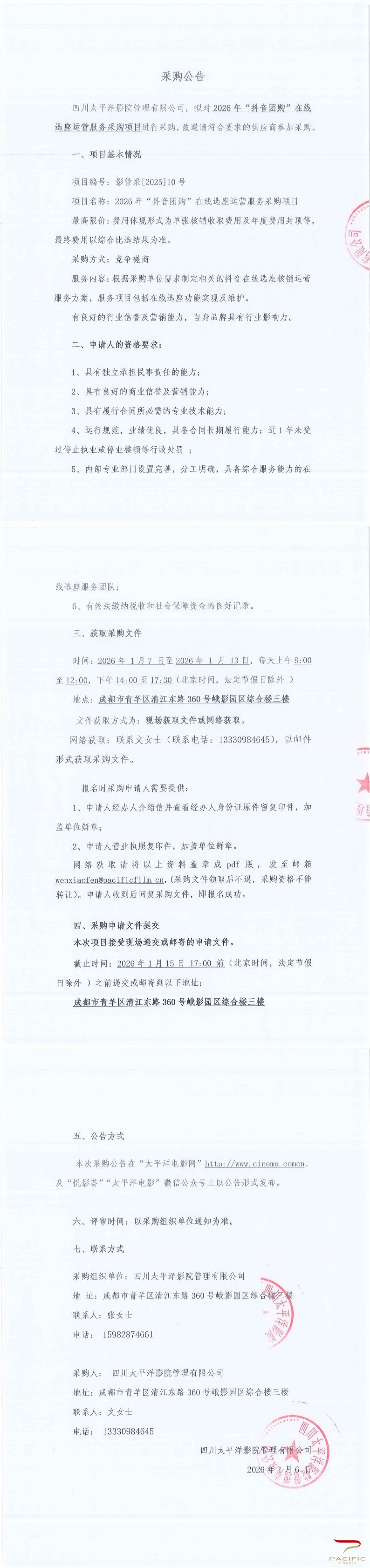 2026年“抖音团购”在线选座运营服务采购公告