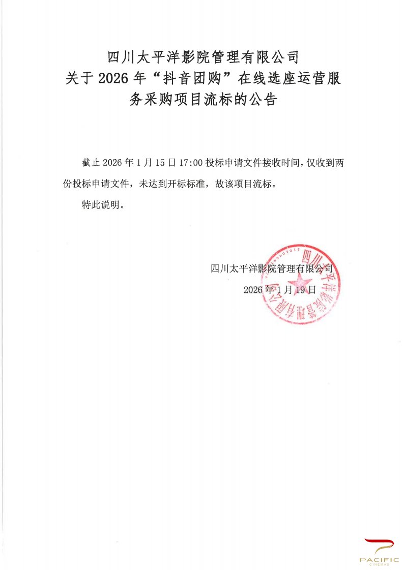 关于2026年“抖音团购”在线选座运营服务采购项目流标的公告