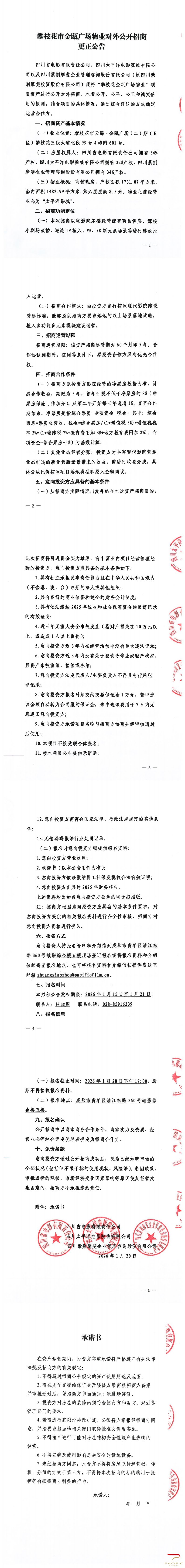 攀枝花市金瓯广场物业对外公开招商更正公告