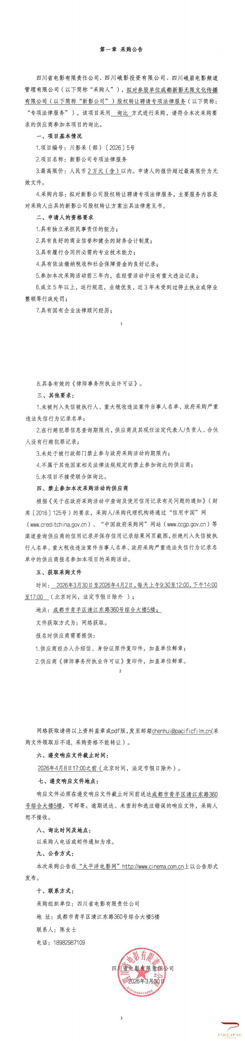 新影公司股权转让专项法律服务-聘请律师事务所采购公告